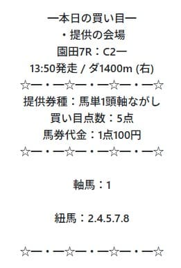 ⑦番の馬が軸とヒモにいるのは少し怪しいと思っていましたが、不的中になるとは…。