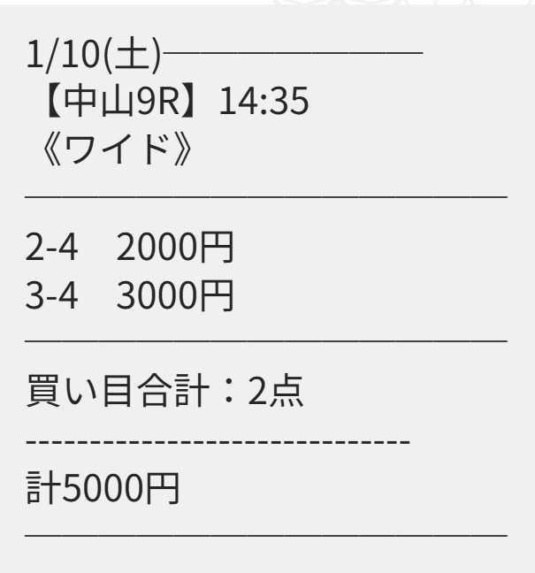 少し買い目に違和感を感じましたが、おそらく大丈夫でしょう。