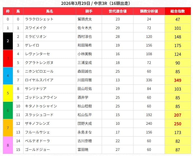 | 公開情報 | 中央競馬のみ/指数 |
