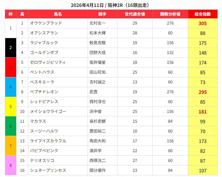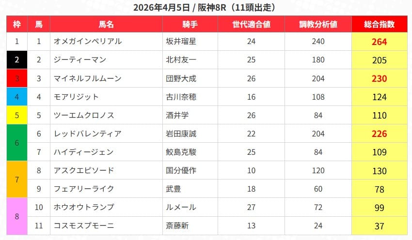 指数上位馬5頭の詳細はコチラ↓