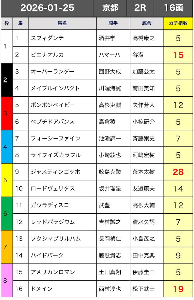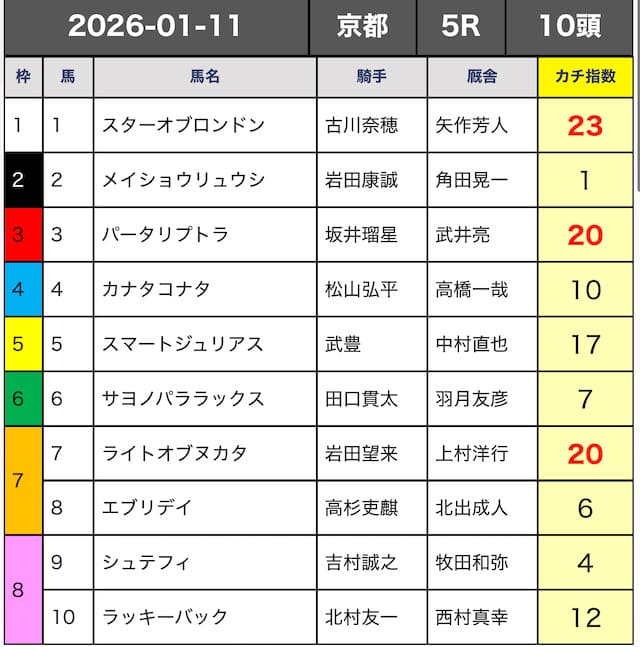 予想の精度を上げる組み上げ方は、カチ指数とは別の指数を使うサイトと組み合わせるという方法です。下記に詳しく記載します。