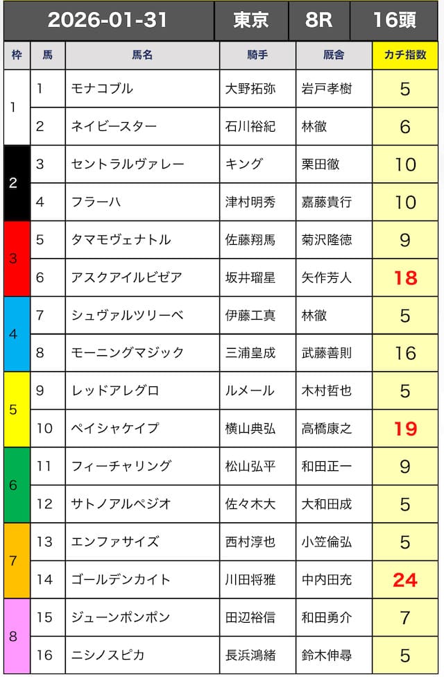 - 「プロの判断基準」が見える無料予想(カチ指数)