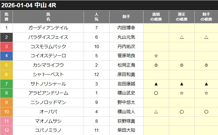 マーゴットミストには△が1つ血統についていたので血統が良い馬なのでしょう。