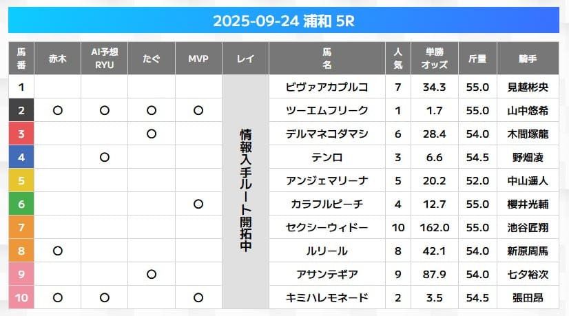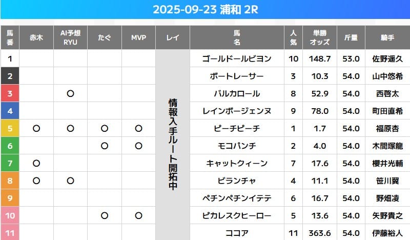 最後は2025年7月4日に開催された船橋5Rの無料予想です。