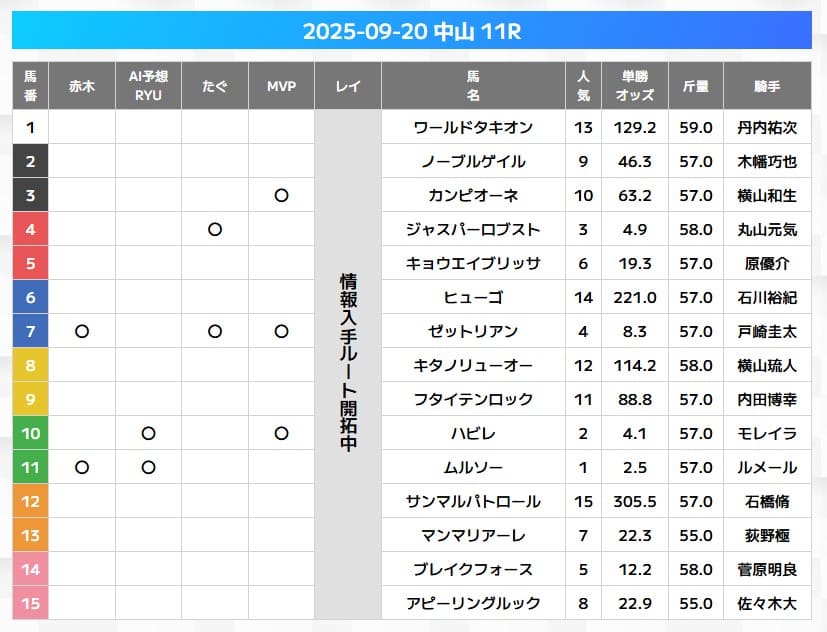 - 予想券種:有力馬の公開