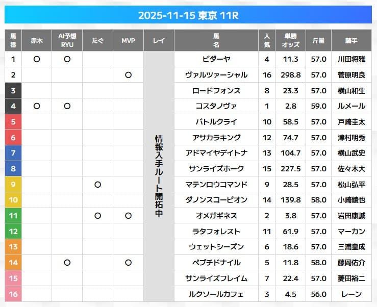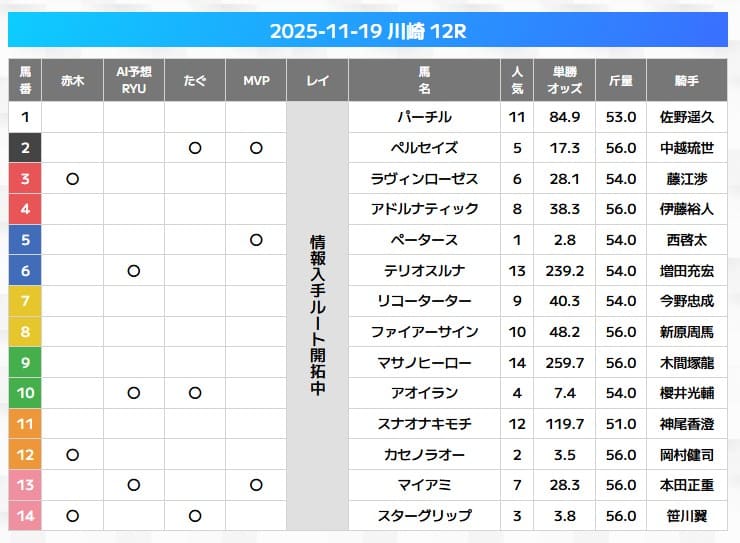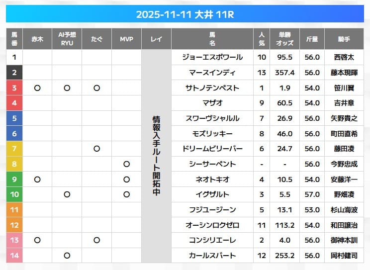 AIとプロ馬券師の印が重なってる時の信頼感がすごい。印が薄い人気馬を切って、しっかり妙味を拾うセンスがある。軸と消しの判断が早くて、買い目組むのがめっちゃ楽。