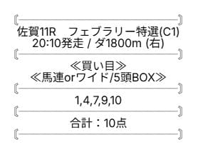 提供されたのは、2026年2月11日の名古屋11レースの買い目になります。
