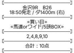 レース結果は「⑬-⑯-⑧」となり、推奨通りワイド5頭ボックス(10点)で購入した結果、「⑬-⑯」が的中しました。