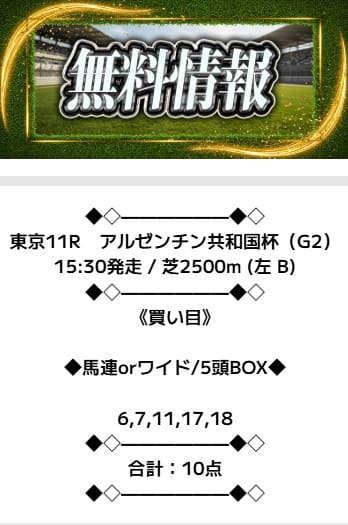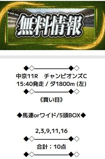 更に、調査時に確認できた無料予想の点数は全て10点でした。また、好走見込みのある穴馬を絡めたBOXの提供なので、稼ぎやすい印象でした。
