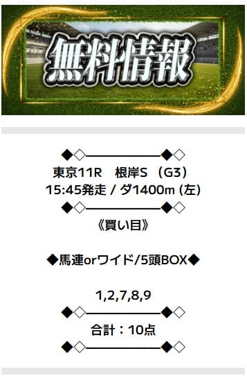 | 無料予想対象 | 中央競馬 |