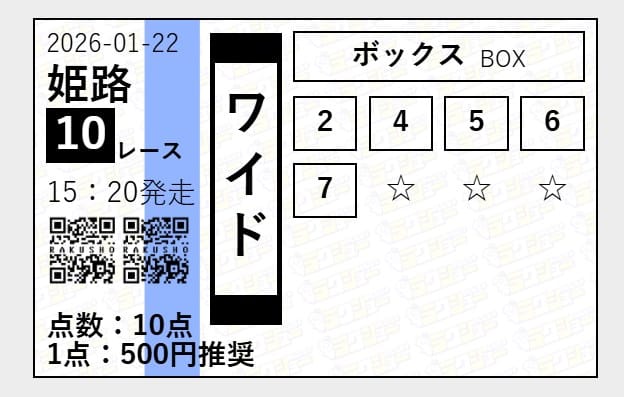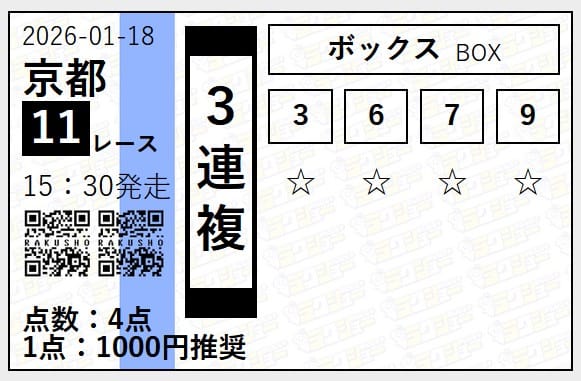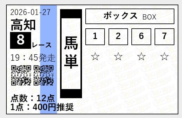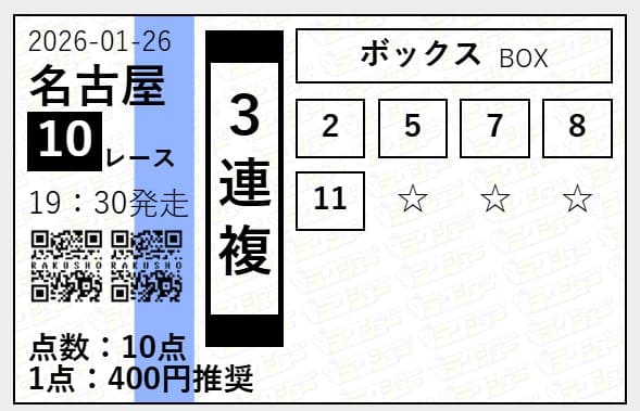 以前はワイドボックス固定でしたが、レースに合わせた券種で公開されるようになりました。これにより、的中率だけでなく回収率の大幅な向上が期待されます。