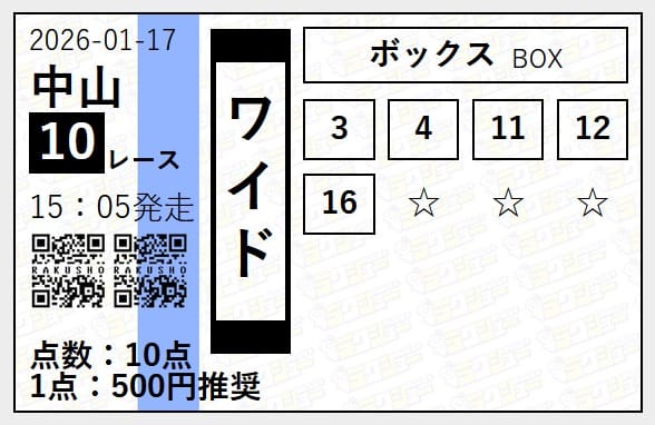 ラクショーPLUSで公開された無料予想を、買い目の指示通りに馬券を購入して検証します。