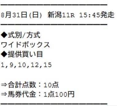 2025年8月30日札幌12R | 的中 | 6,800円 | 680% |