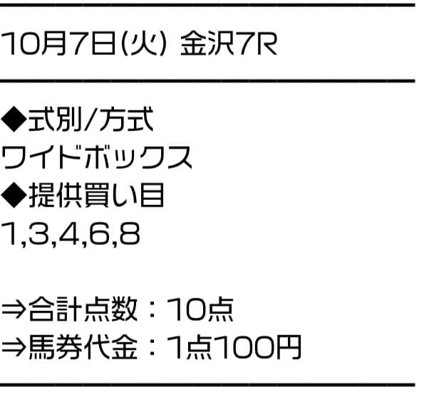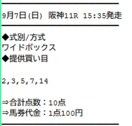 無料予想はワイド5頭ボックスで1,000円なので参加しやすい点が良いですね。
