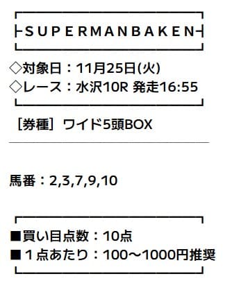 結果から見ても1着でしたので、スーパーマンバケンの予想印は完璧でしたね。
