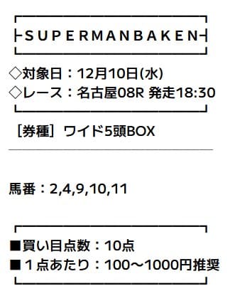 - 予想券種:ワイド5頭BOX/予想印の公開