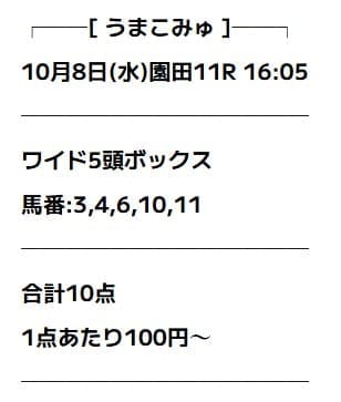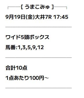 今回はやや堅めの印象を受ける買い目でしたが、3連複ということもあり場合によってはワイド以上の配当を期待できるかもしれません。