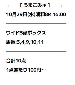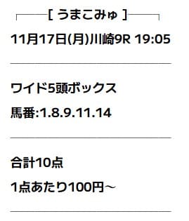 うまこみゅは的中している事の方が多く体感的中率65%です。 ワイド5頭BOXの有益さに気づいたわw 今週も的中しているし今のところプラスではあるので今後もがんばっていきたいです。