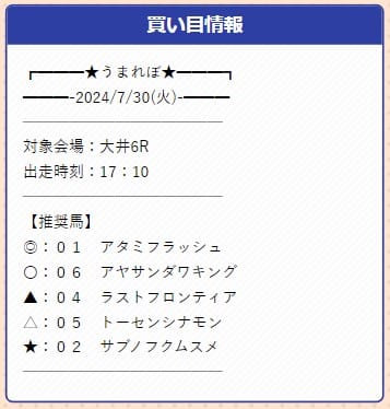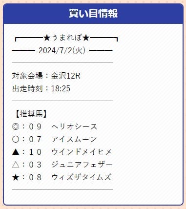 無料予想をしっかりと毎日公開しているので、サイトの親切心が伝わります。登録しておくだけで損はないかな。