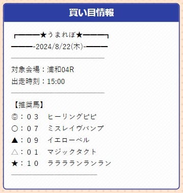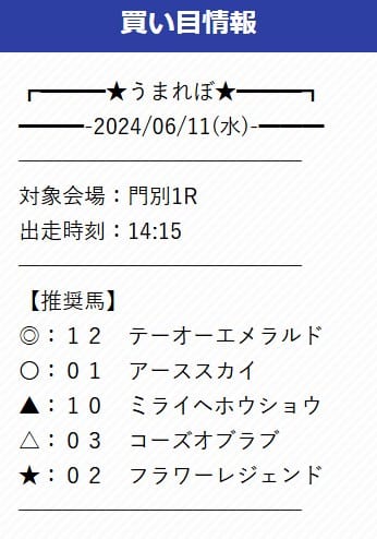 うまれぼの公開する無料予想を実際に馬券を買って検証します。