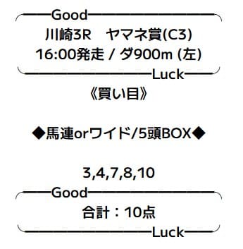 今回は地方競馬の予想となり、どのような展開となるのか楽しみです。買い目は、前レースと同様に本命をメインにある程度の穴馬を混ぜています。