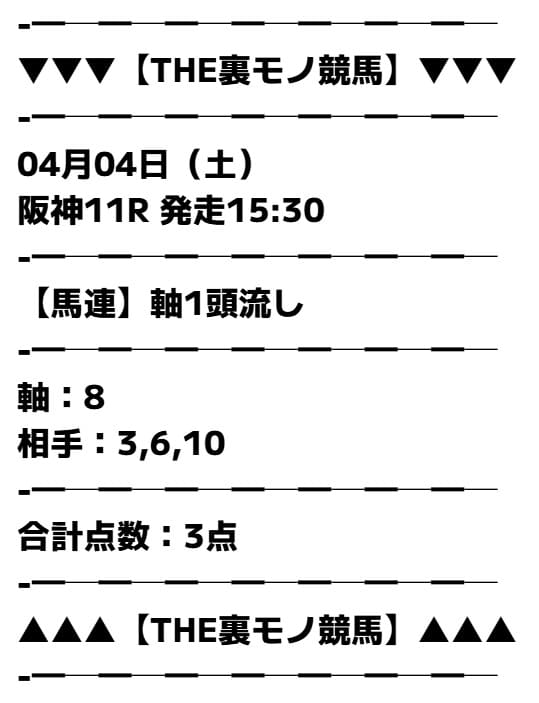 | 2025年12月28日 阪神9R | 1050円 | 350% |