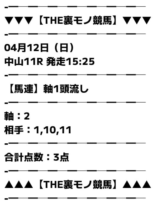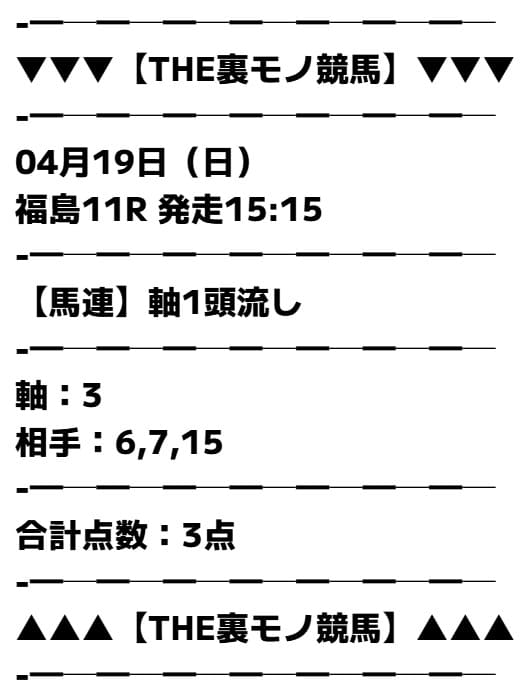 THE裏モノ競馬の無料予想に3レース参加した結果、3戦2勝1敗でした。