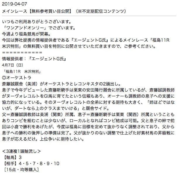 ワンアンドオンリー有料予想の提供情報