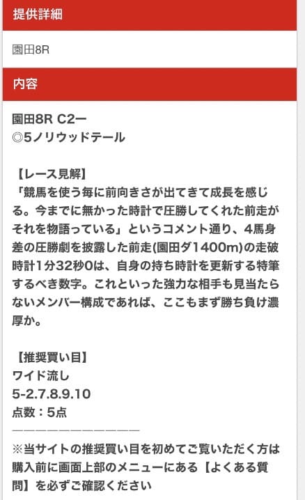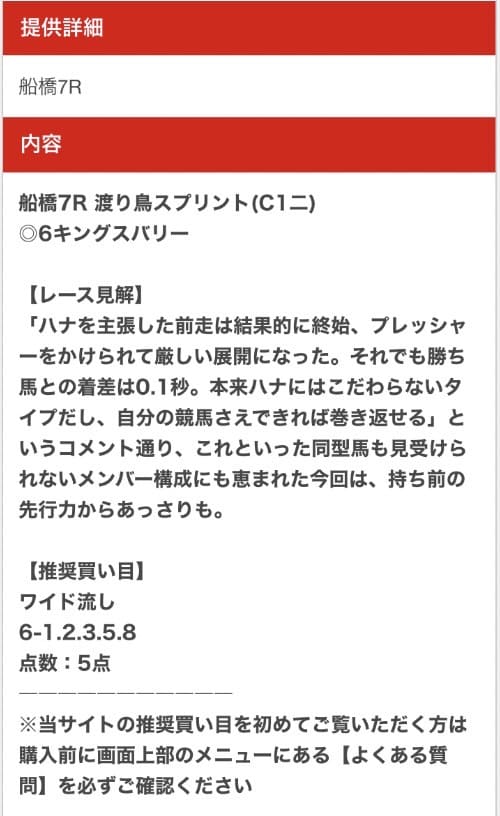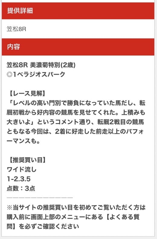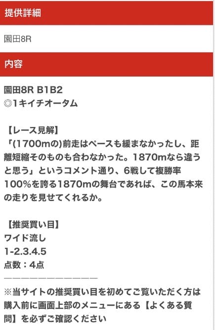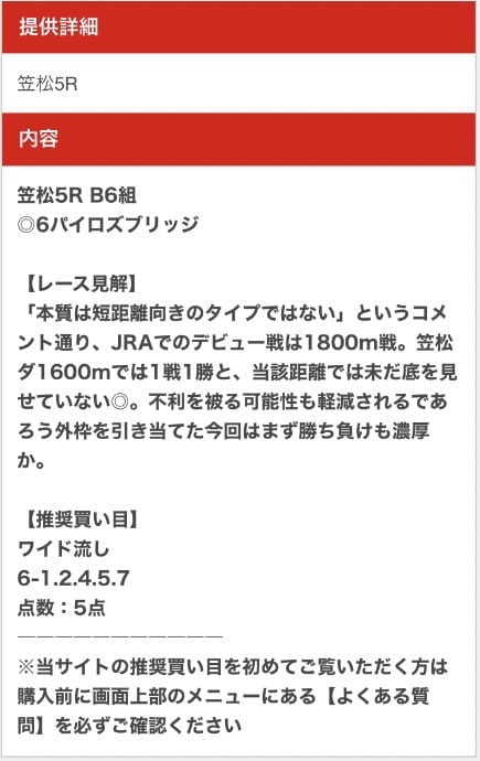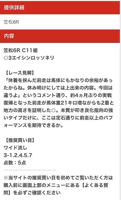 データ分析を謳っている割に予想の根拠が弱く、ただの人気馬推しに見える場面もありました。これでは有料にする意味がなく低評価評価になります。