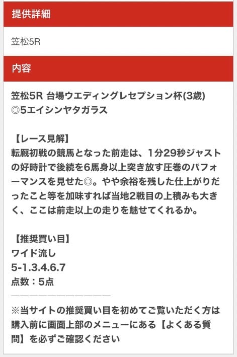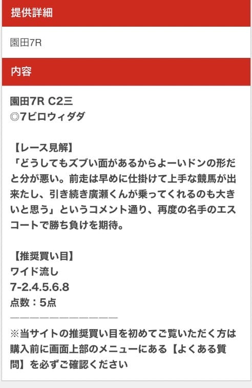 厳選買い目と言いながら人気馬の組み合わせを並べただけ、当たってもトリガミでプラスにならず、まともな人は使わない方がいい。