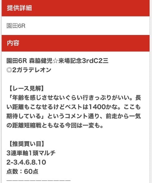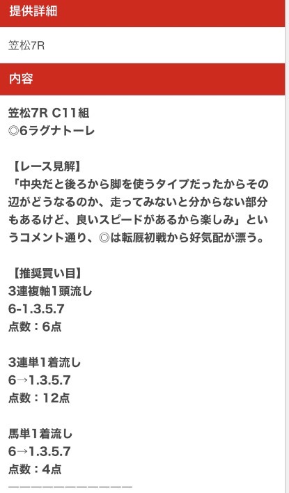 買い目の根拠説明が薄く「なぜこの馬か」が示されず信頼できない。