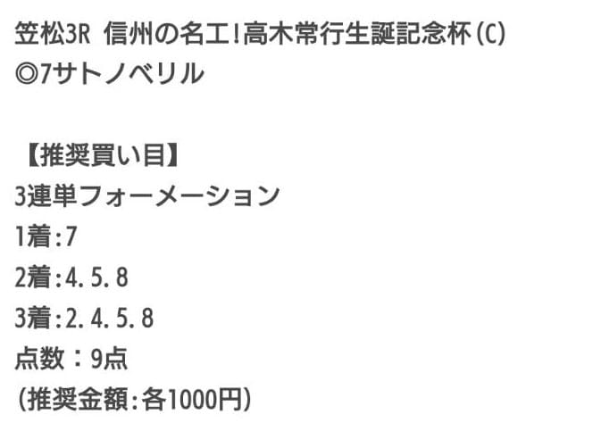 データがたくさん並んでいる割に予想内容は浅く、展開との整合性が弱いと感じました。数字を並べているだけのようで実戦向けとしては不満が残ります。