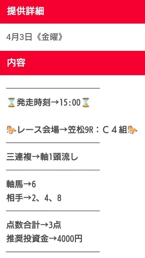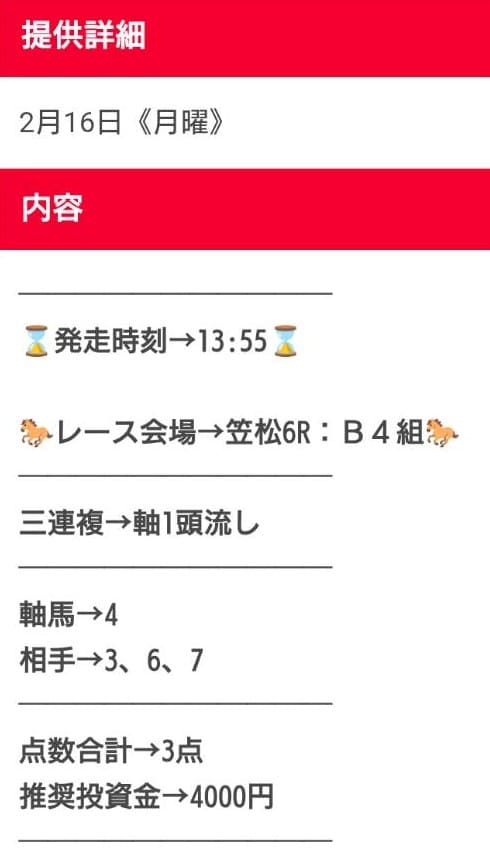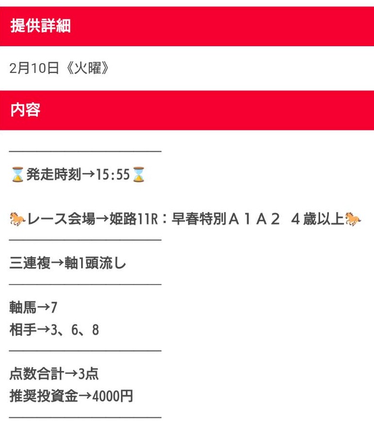 - 買い目は安心の当日公開
