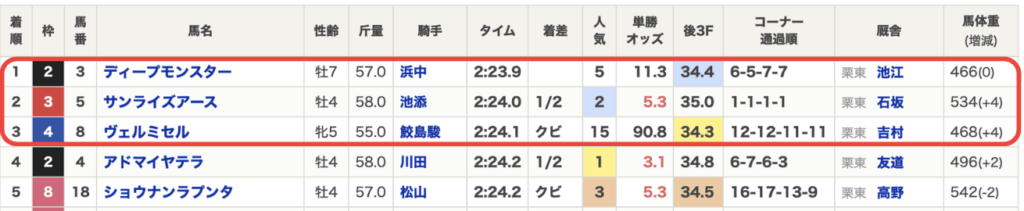 15番人気のヴェルミセルをボックスに入れられるかが鍵ですが、上位人気が拮抗しているレースでは、このように「5番人気が頭」になるだけで配当が跳ね上がります。