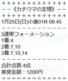 | 2026/01/25(日) | 小倉1R |