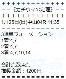 | 2026/01/25(日) | 中山4R |