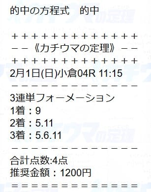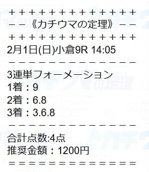 | 2026/02/01(日) | 小倉9R |