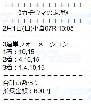 | 2026/02/01(日) | 小倉7R |