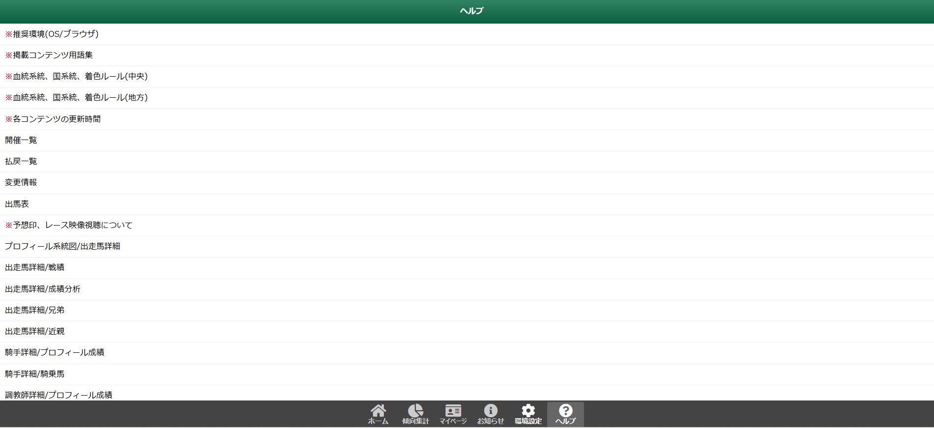 スマート出馬表のコンテンツは必要最低限に抑えられており、コンテンツ量が抑えられている分、一項目の内容がしっかりとしています。