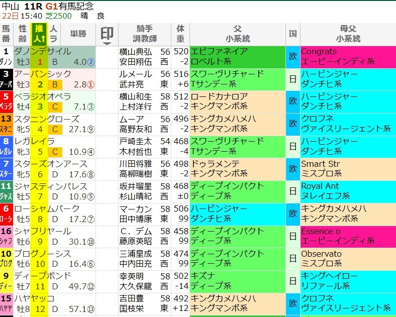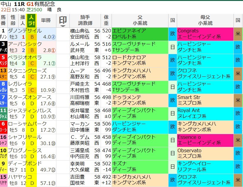 「人気ランク」は、全ての競馬新聞の人気傾向をランク化したものです。
