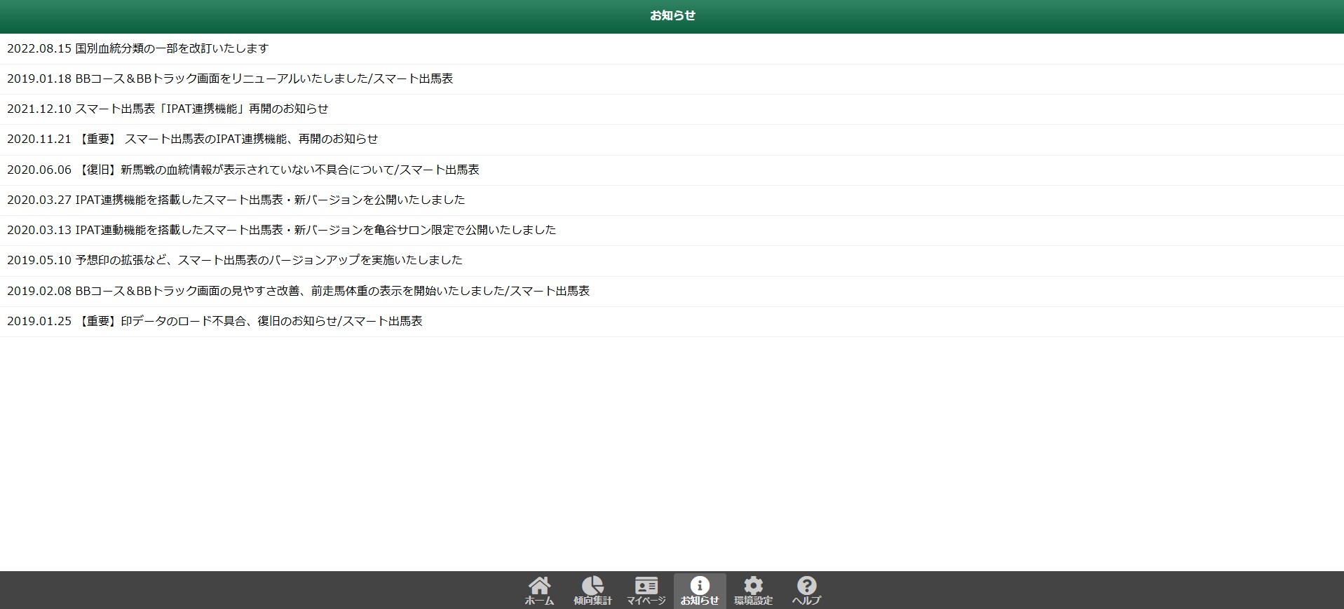 サイトの仕様変更などのお知らせもあるため、普段からスマート出馬表を利用している方は定期的にチェックしておきましょう。